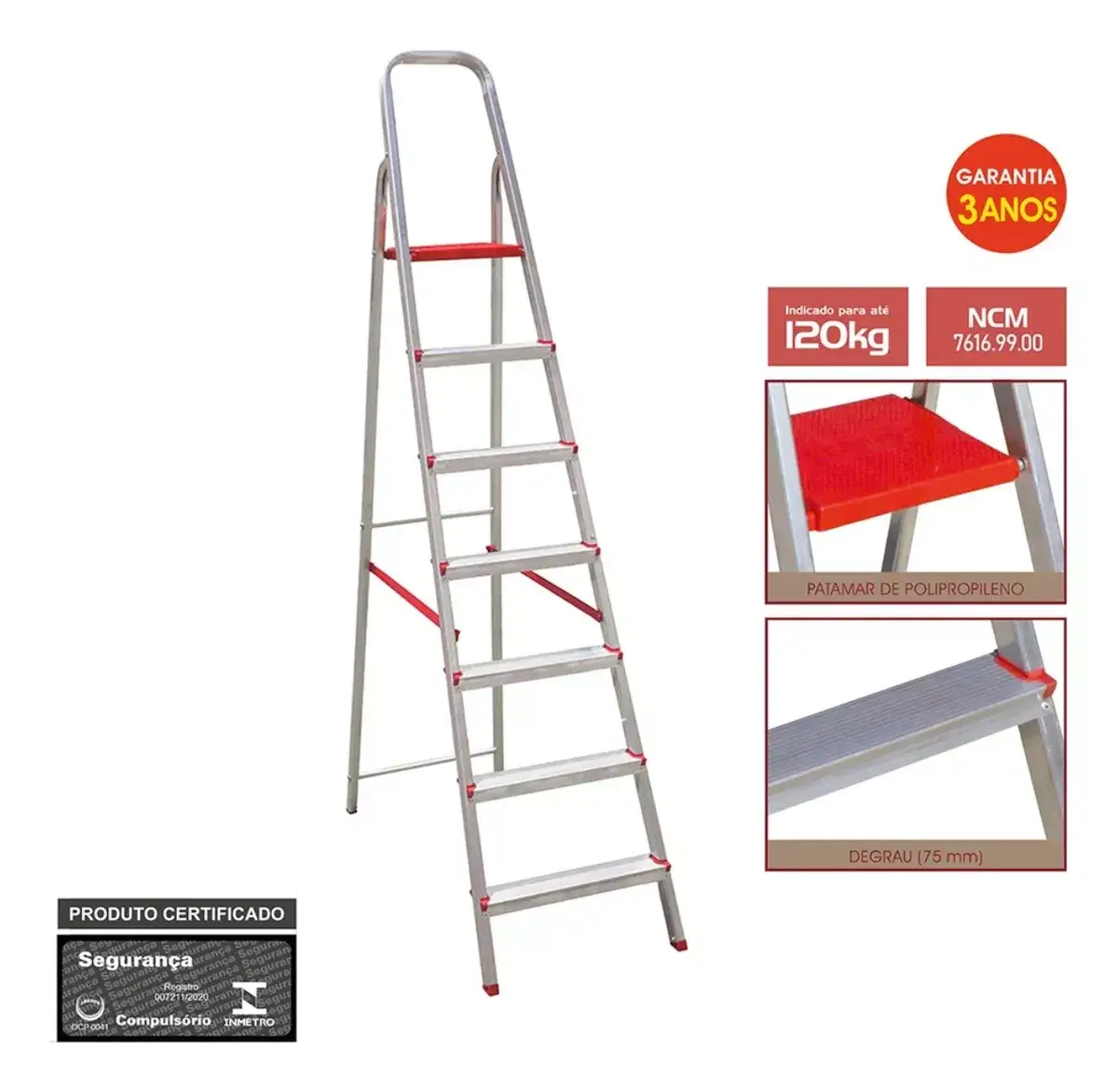 ESCADA DE ALUMINIO BOTAFOGO 7 DEGRAUS
