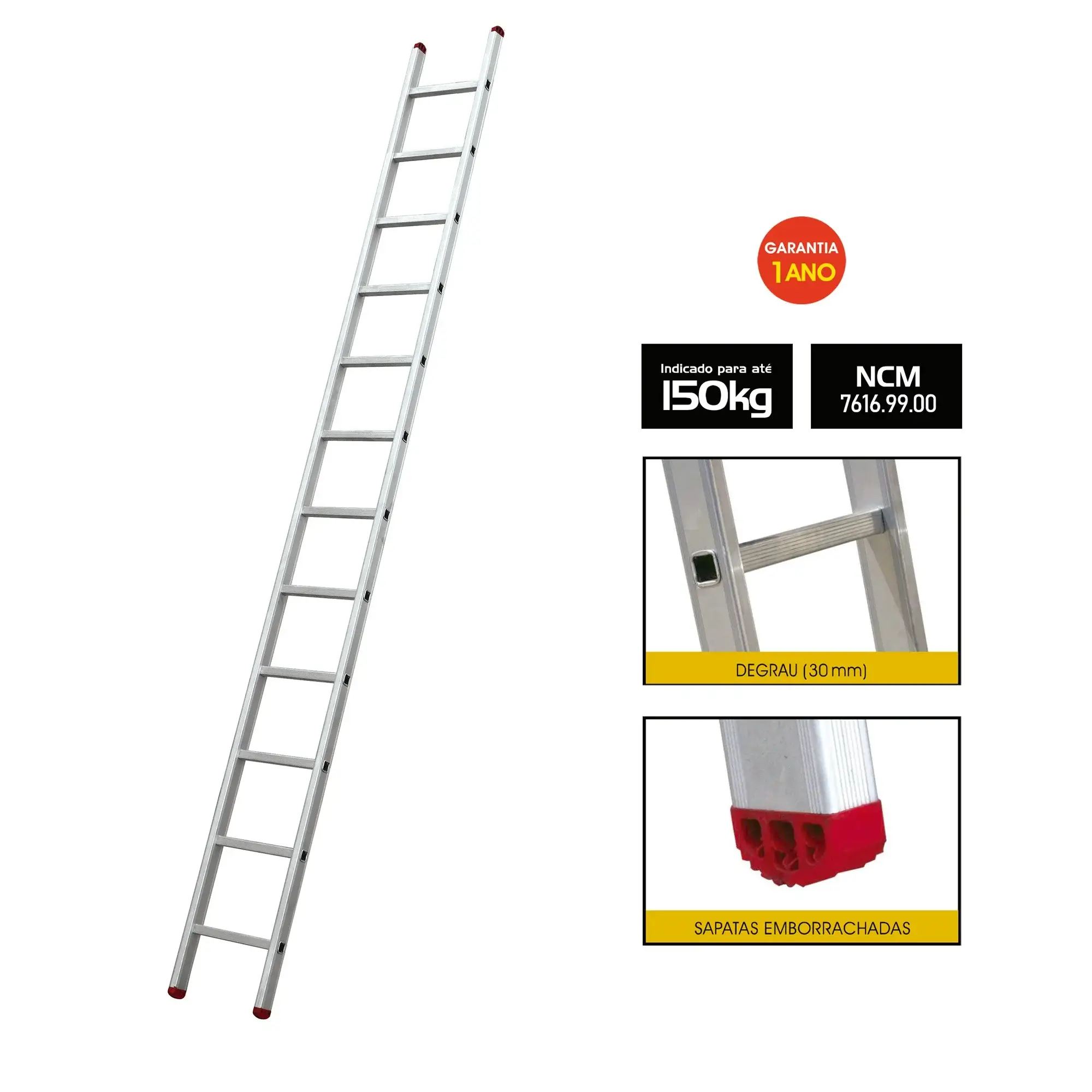 ESCADA PARALELA DE ALUMINIO BOTAFOGO 12 DEGRAUS