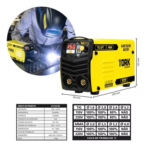 INVERSORA MMA 150A KAB150 MICRO BIVOLT TORK