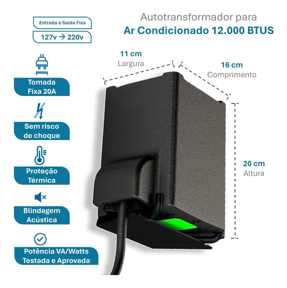 Dimensões (C x L x A) 16 × 11 × 20 cm